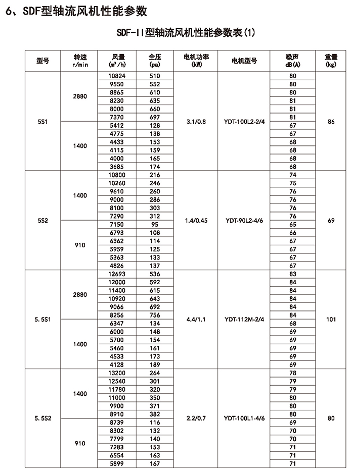 二、SWF(HLF、GXF)-I、II、H 系列高效混流風機