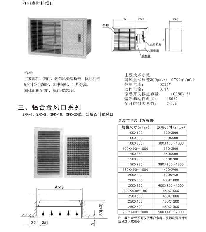 一、FHF WSDc-K、PFHF WSDc-K 系列防火閥、排煙閥、排煙口、送風(fēng)口