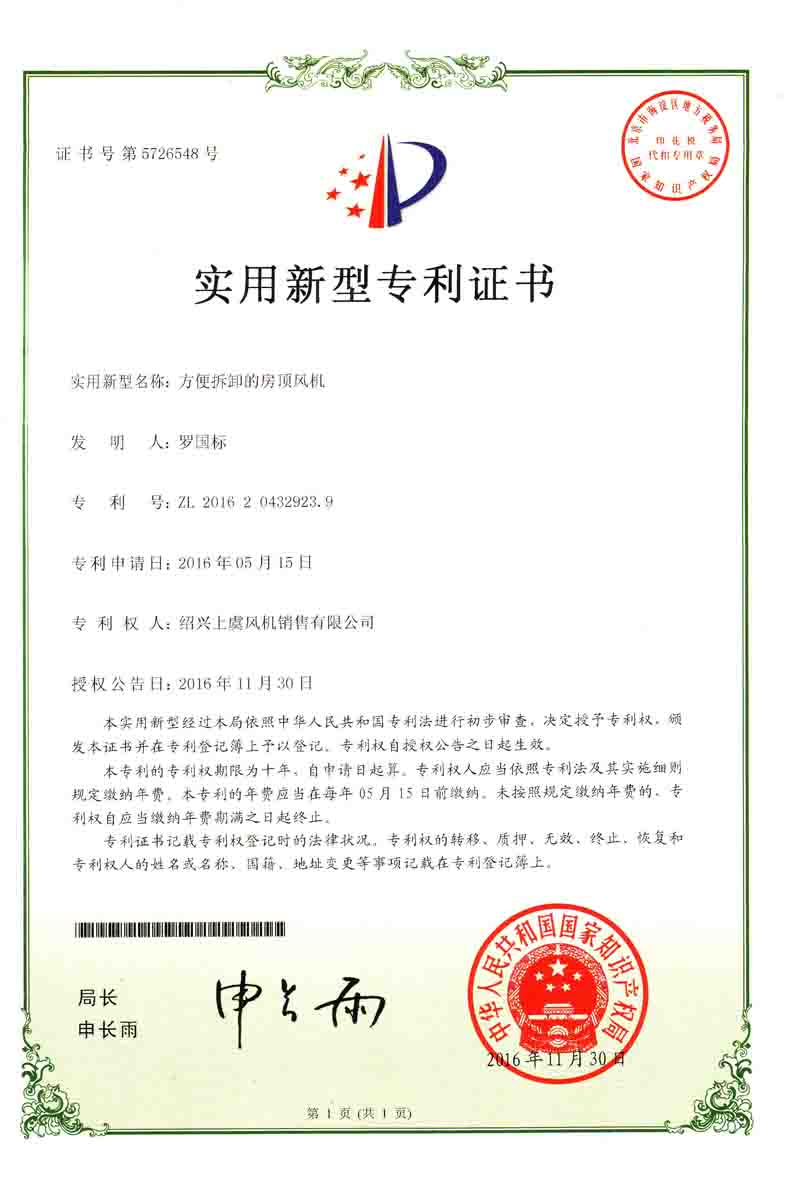 機箱的進風端快拆式過濾格網實用新型專利證書